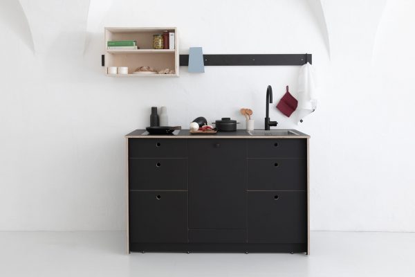 Diese Küche aus wertvollem Holzwerkstoff ist frei planbar. Ihre Größe ergibt sich aus Breite und Anzahl der Module. Sie kann auch frei im Raum stehen, denn die Rückseite ist geschlossen. Für weitere Infos ►bitte anrufen◄